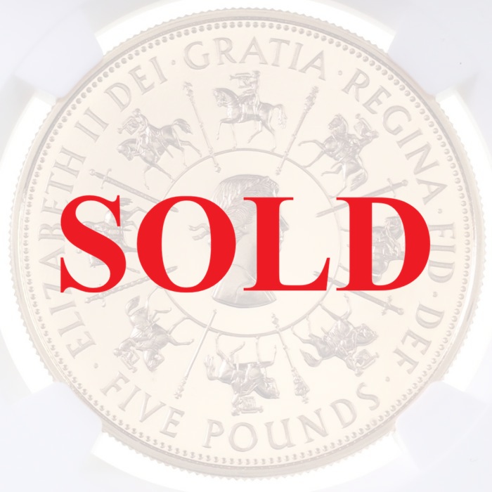 こちらは戴冠40年を記念して発行された5ポンド金貨です。