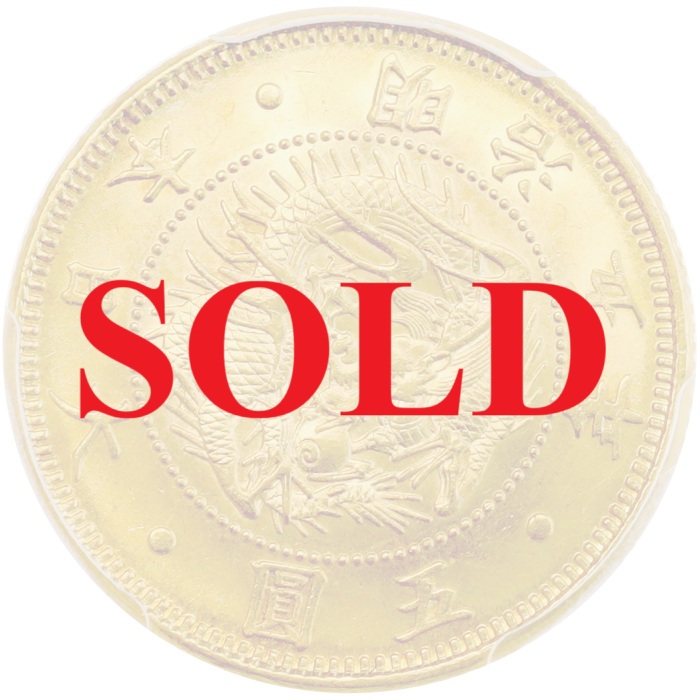 日本 明治5年(1872)銘 5円金貨 有輪 日章旗 流麗彫金 PCGS MS64