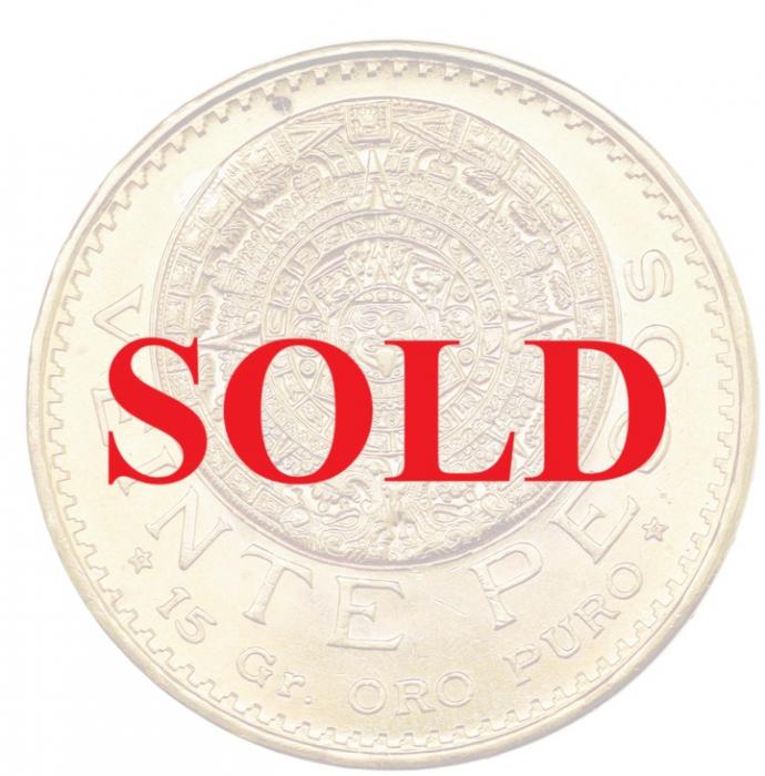 20 pesos gold coin Mexico 1959 Restrike BU Aztec Calendar