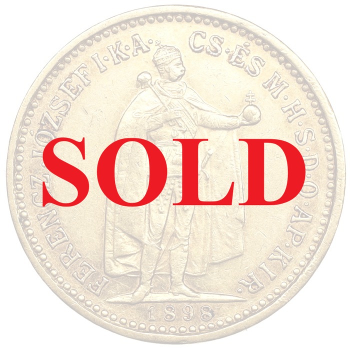 ハンガリー王フランツヨーゼフ1世の立像がレリーフされている金貨です。