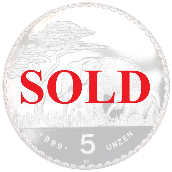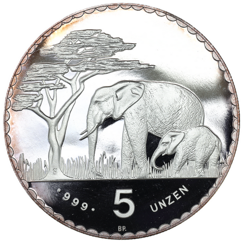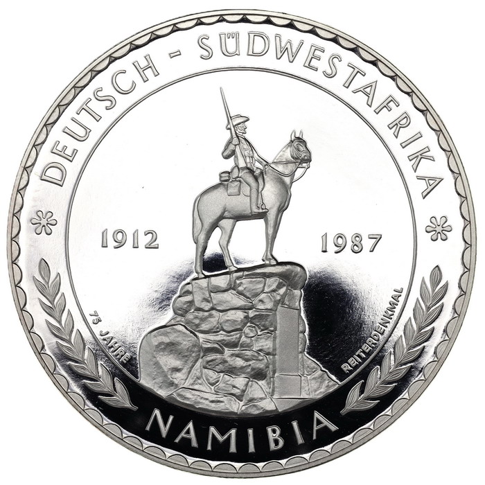 1987年に発行されたナミビア(旧ドイツ領南西アフリカ)の5オンス純銀メダル。