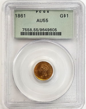 アメリカ 1861年銘 リバティ-インディアンヘッド 1ドル金貨 PCGS AU55 90年代クラシックグリーンラベル