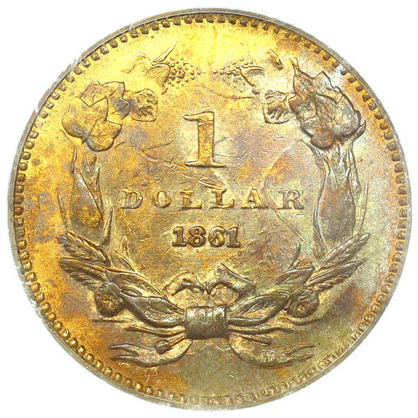 4月、南部諸州が連邦を離脱し南北戦争が勃発。政治・経済・社会すべてが激しく揺れ動く中で、この1ドル金貨は発行されました。