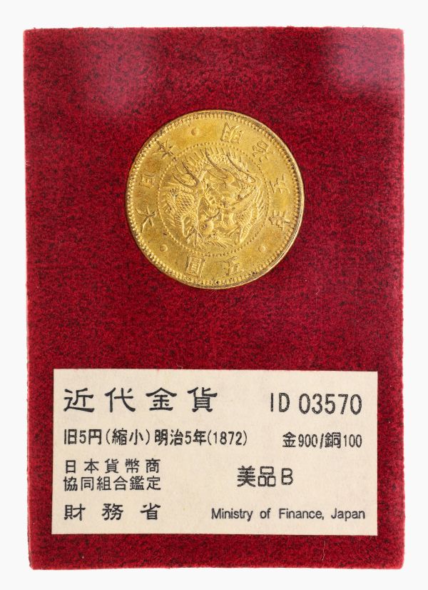 Japan 1872(Meiji5) 5 yen gold, graded by JDNA, slabbed and distributed by Ministry of Finance