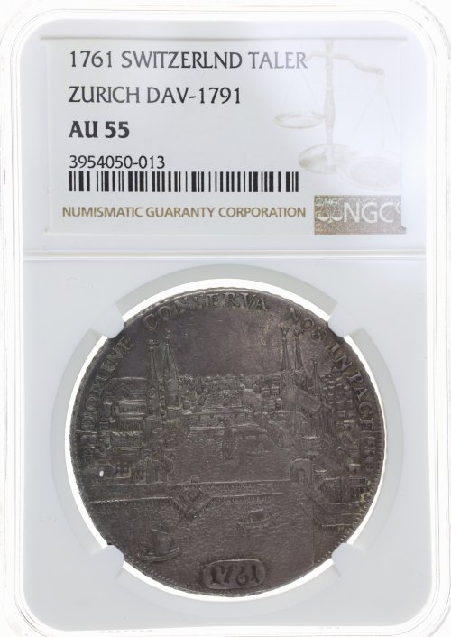 スイス 1761年 チューリッヒ ターラー銀貨 都市景観 NGC AU55