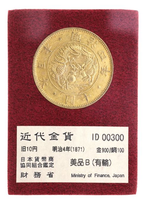 Japan 1871(Meiji4) 10 yen gold, graded by JDNA, slabbed and distributed by Ministry of Finance