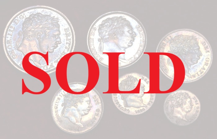 イギリス 1816, 20年 シリング〜ペニー銀貨6枚セット 究極のエメラルド・レインボートーン