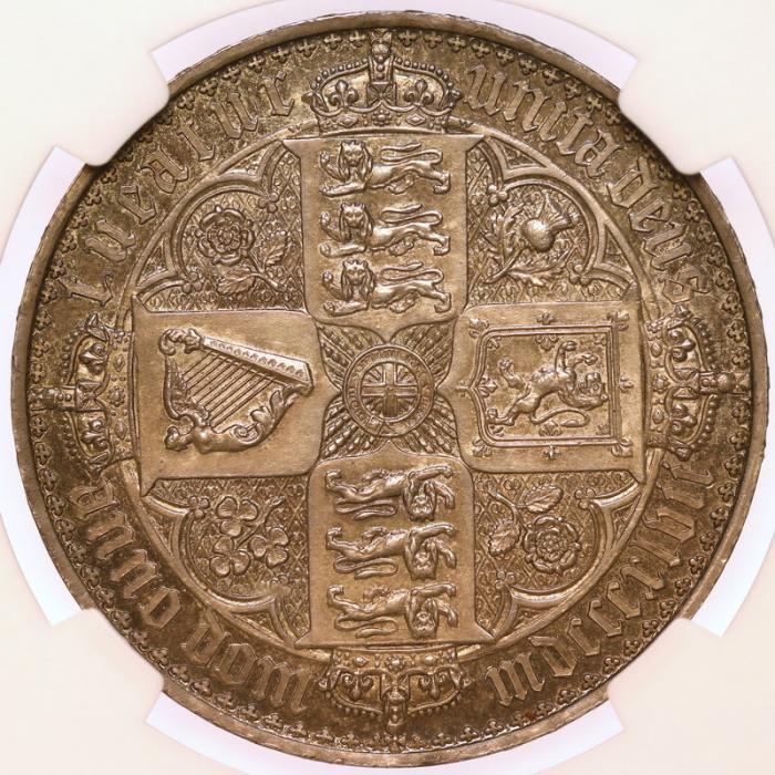 「世界一美しい銀貨」と呼ばれ、19世紀イギリス銀貨の中で最も有名かつ人気の高いレアコインです。