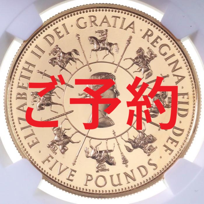 こちらは戴冠40年を記念して発行された5ポンド金貨です。