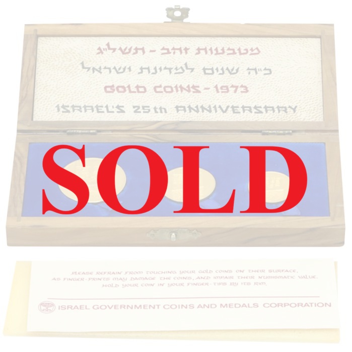 こちらはイスラエル建国25周年を記念して発行された3枚の記念コインのセットです。