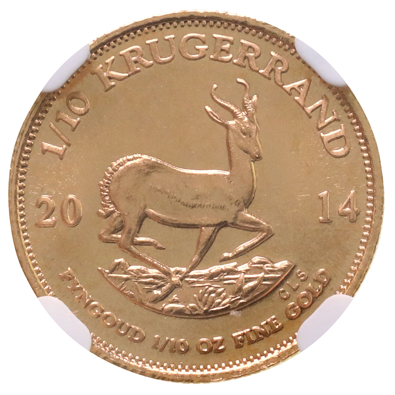 こちらは2014年発行の1/10オンスクルーガーランド金貨です。
