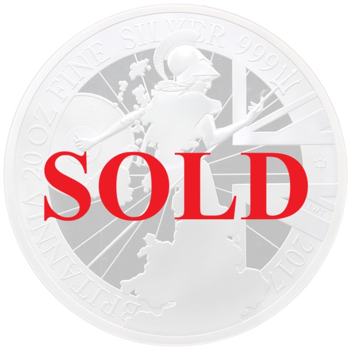 こちらは2017年発行、ブリタニア銀貨発行20周年記念の250ポンドのブリタニア銀貨です。