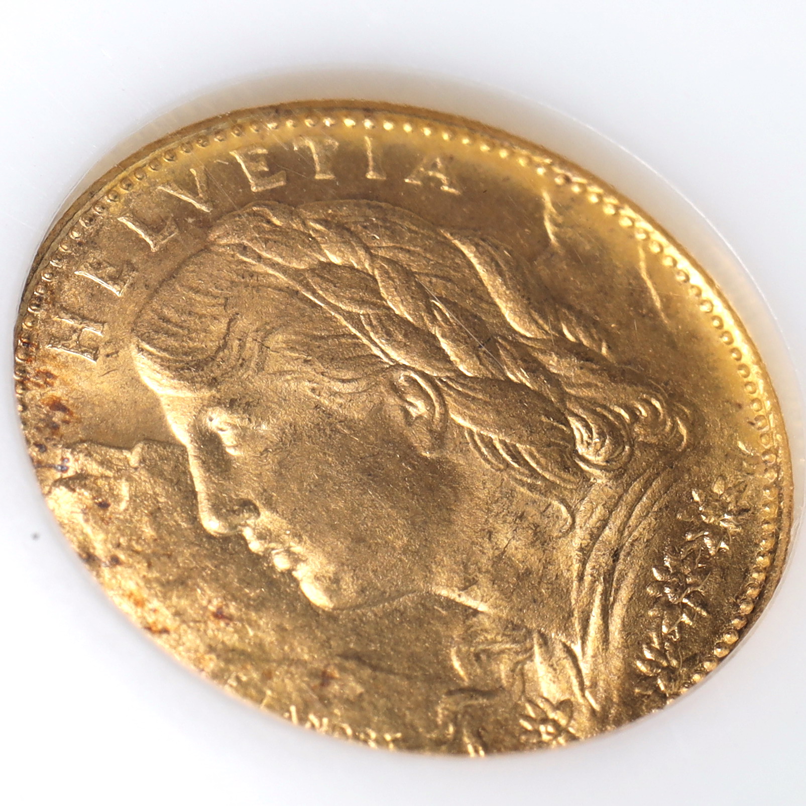 表面に記されている「HELVETIA」は現地の呼び名でヘルヴェティアとは、元々スイス連邦の擬人化と言われています。