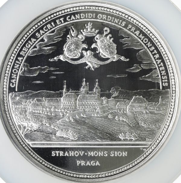 プラハ・ストラホフ修道院図書館とチェコ貨幣学協会105周年を記念した、極めて精緻な一枚。