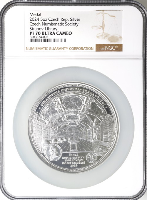 Czech Republic 2024 5oz Pure silver Medal Proof STRAHOVSKÁ Library NGC PF70 Ultra Cameo