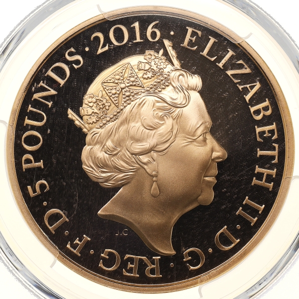 イギリス 2016年 エリザベス2世 生誕90周年記念 5ポンド プルーフ金貨 PCGS PR69DCAM