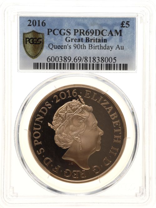 Great Britain,England, 5 pounds, gold,2016, Queen's 90th Birthday PCGS PR69DCAM